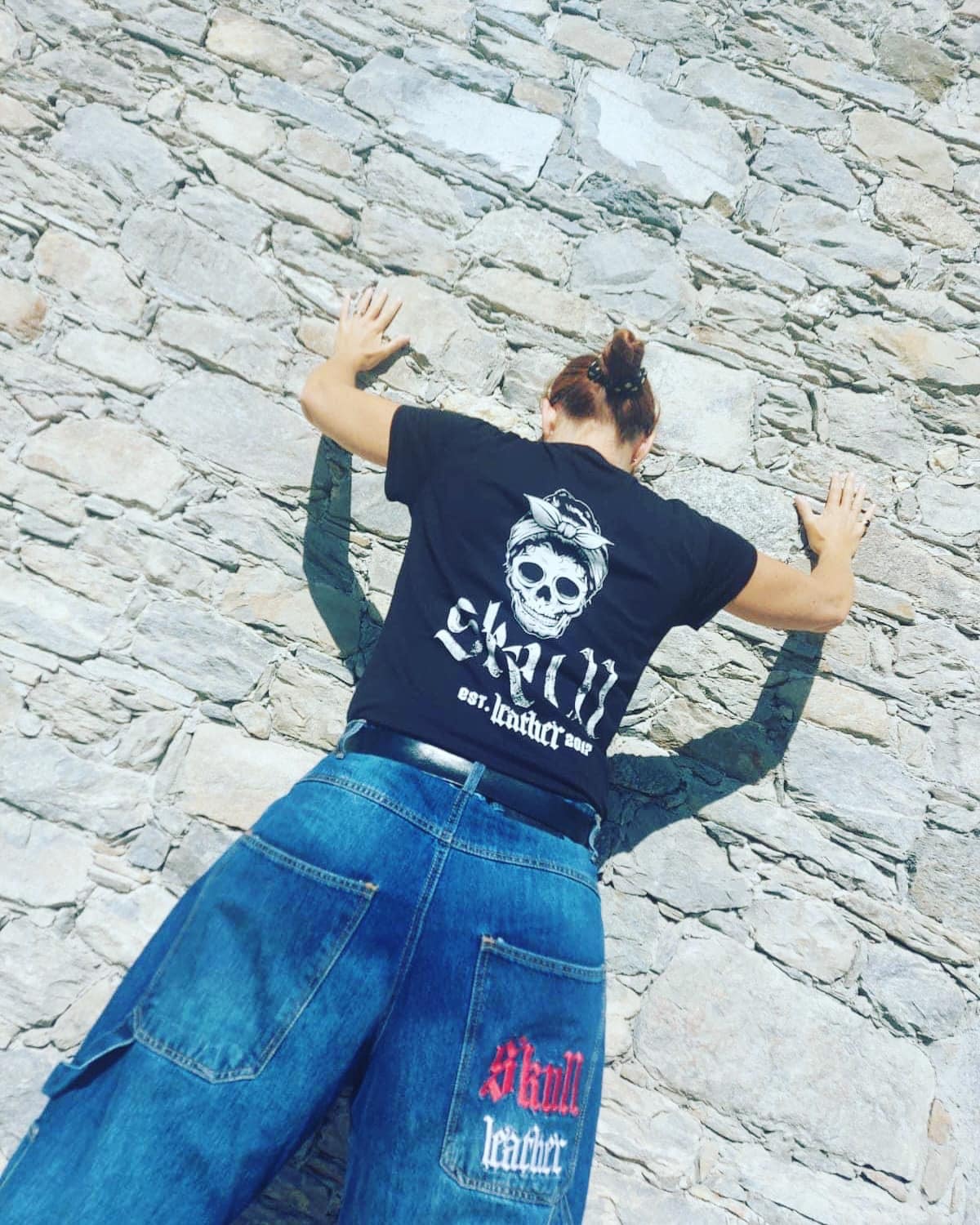 Pantalone denim blue BAGGY di alta qualità dalle taglie donne alle taglie uomo , ricamo su tasca posteriore destra, taschini laterali e porta martello, per amanti del mondo skate e street hardcore, NY style